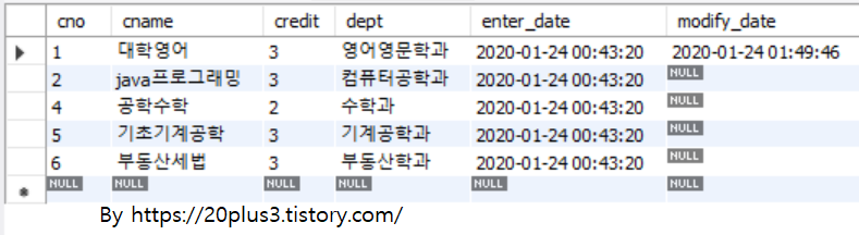 같은 형식으로 course, enroll table에 데이터를 insert해보겠다.