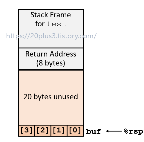 위 코드에서 gets(buf)를 호출하기 전에는 스택은 이런 형태를 가질 것이다.