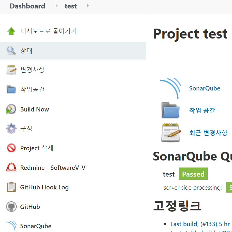 다만 이 플러그인이 벌써 4년이나 지난 오래된 플러그인이기도 하고 그간 업데이트도 안되서 그런지 플러그인 설치는 되지만 제대로 기능을 하지 못한다. 아래 그림처럼 젠킨스에 레드마인이 곧장 연결되고, 또 클릭하면 레드마인으로 이동하기는 하지만, 그 이상의 기능을 수행하지 못한다.